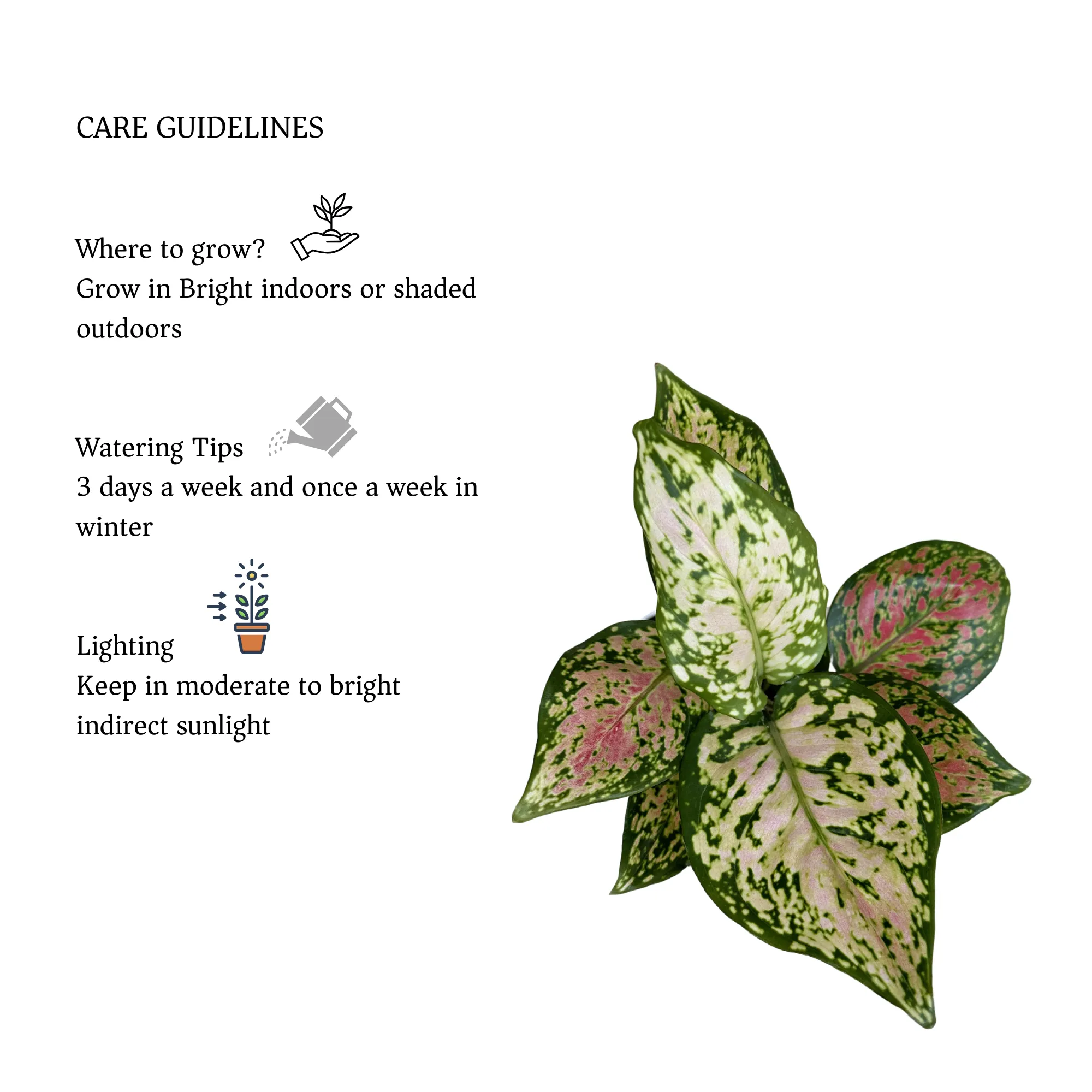 - Our stunning Aglaonema Pink Plant, a captivating addition to any indoor space. This vibrant and lush plant is perfect for home decor, adding a pop of color and a touch of elegance to your living room, bedroom, or office. With its beautiful pink and green leaves, the Aglaonema Pink Plant not only enhances the aesthetics of your space but also promotes a sense of tranquility and well-being.