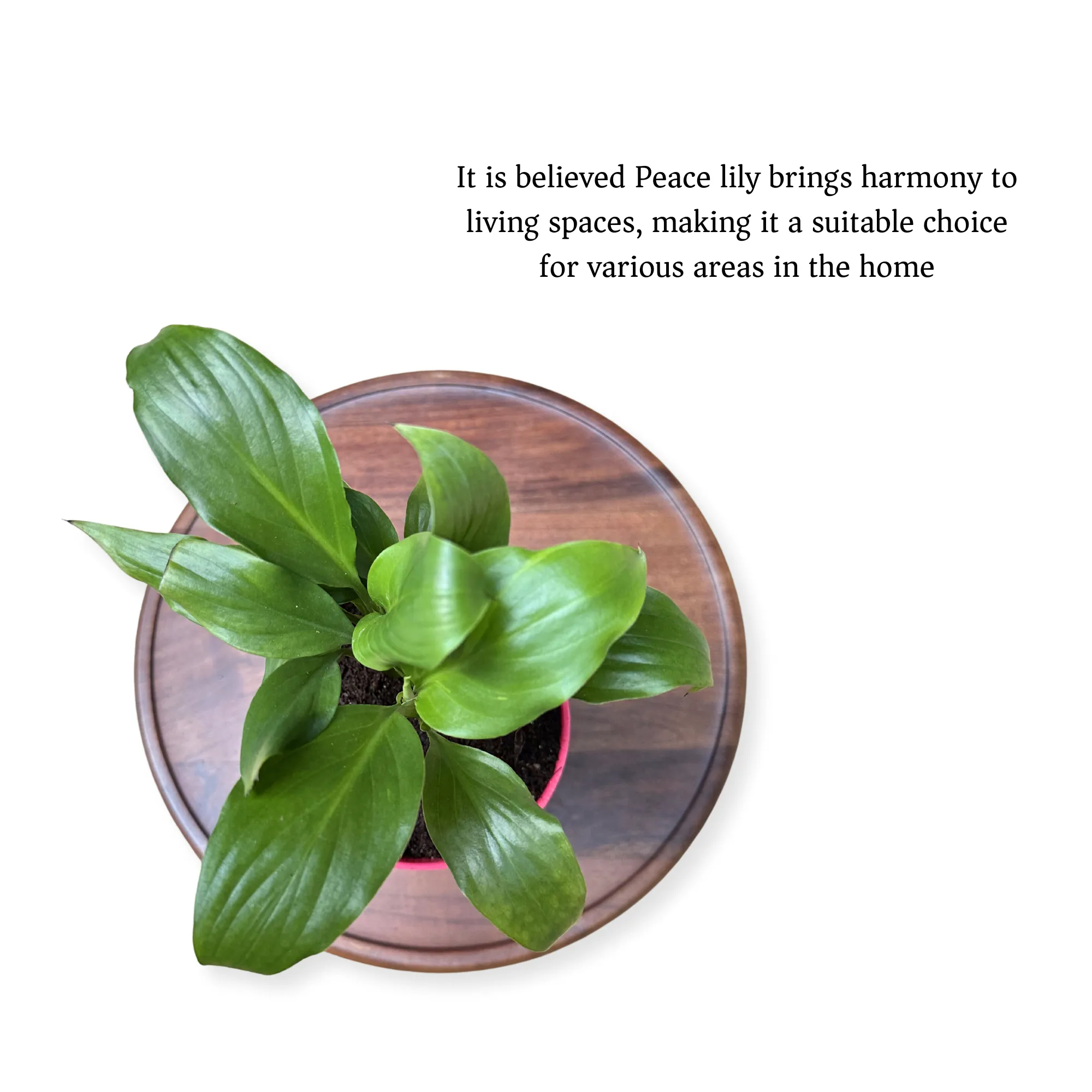 Perfect for any area in your home, the Peace Lily is believed to bring a sense of balance and peace to its surroundings. Its lush green foliage and delicate white flowers create a calming ambiance, making it an ideal choice for bedrooms, living rooms, or office spaces.