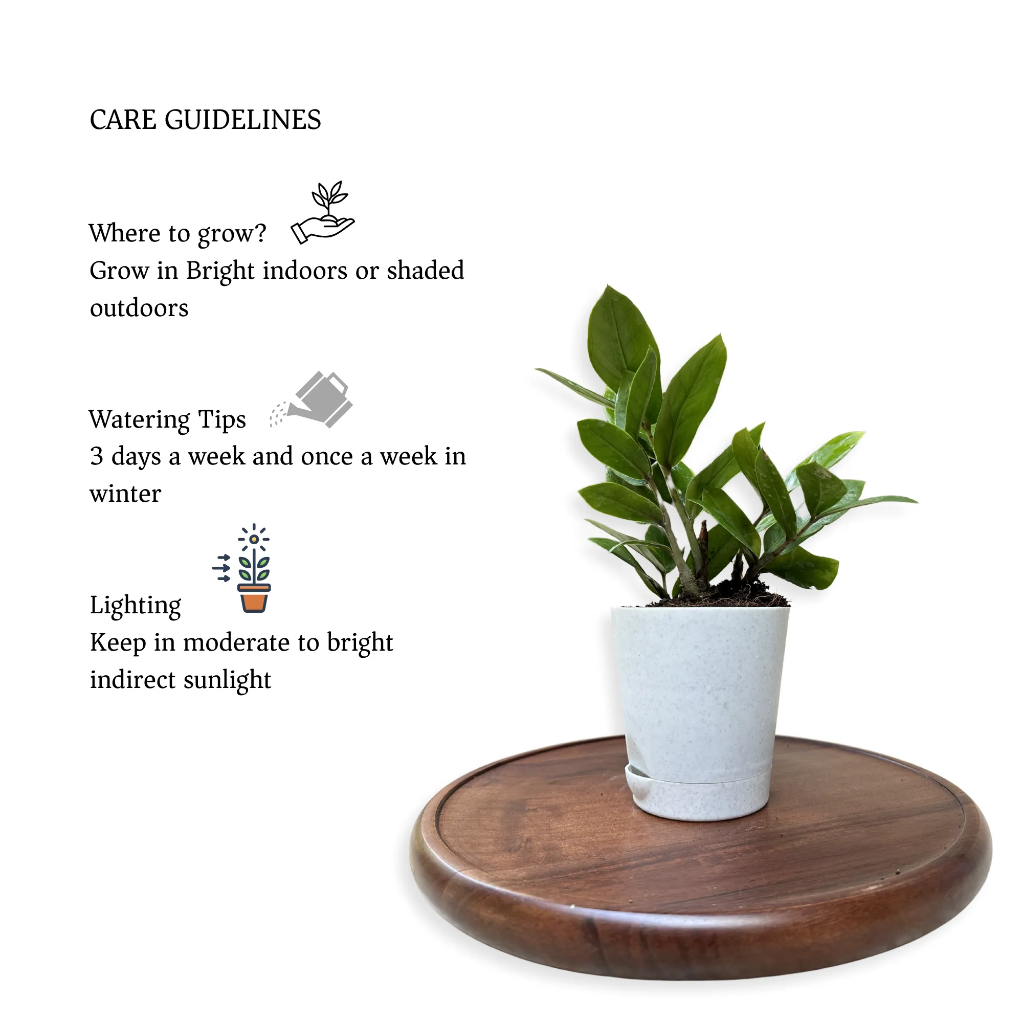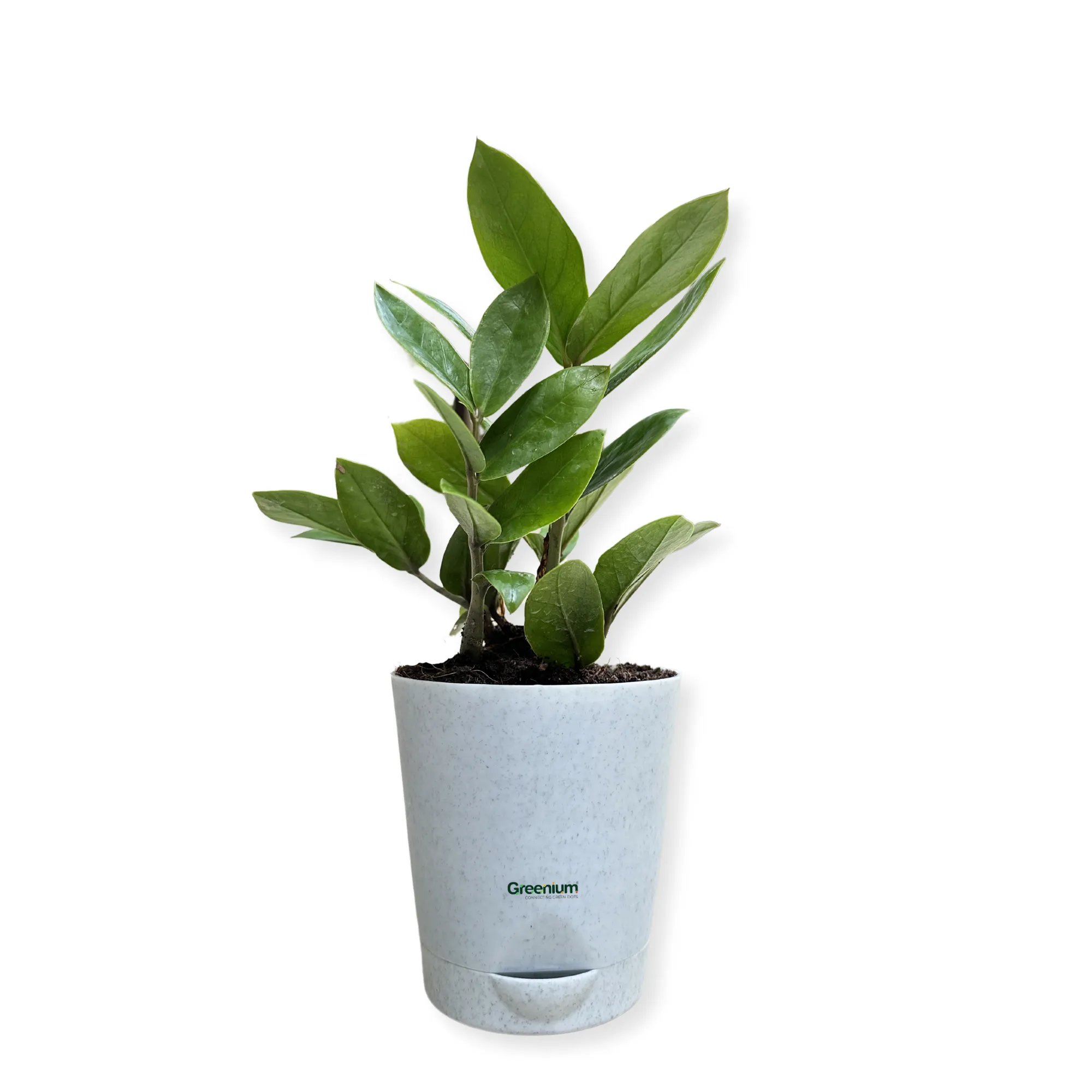 - Long-lasting beauty with minimal maintenance required.Introducing our exquisite ZZ Plant, a must-have addition to your indoor greenery collection. This natural beauty not only enhances the aesthetics of your home decor but also contributes to a healthier and more harmonious environment. Perfect for adorning your living room, bedroom, or office space, the ZZ Plant brings a touch of nature into any room. Its lush green foliage adds a refreshing and vibrant element to your interior decor. With its air-purifying properties, the ZZ Plant helps to remove toxins like xylene and benzene from the air, promoting a cleaner and healthier indoor atmosphere. This makes it an ideal choice for those seeking air purifier plants for home indoor use. Positioned in the north or east direction of your home, the ZZ Plant is believed to enhance positive energy flow, contributing to a balanced and harmonious environment. Its presence symbolizes well-wishes for financial success and positive energy in the recipient’s life, making it a thoughtful and meaningful gift. Easy to care for and requiring minimal maintenance, our ZZ Plant comes with a decorative pot, ready to adorn any tabletop or shelf in your home or office. Elevate your indoor decor and experience the beauty and benefits of the ZZ Plant today.